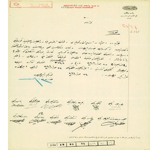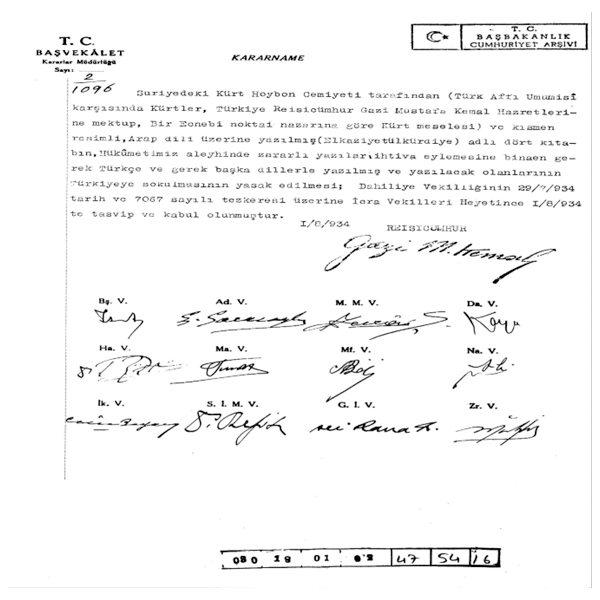 بەڵگەی:(1بڕیاری قەدەغەکردنی بەیاننامەی “لاتین-کۆمیتەی ئیتیحادی ئیسلام”، کە لە جەزائیرەوە بۆ هەندێک بازرگانو خەڵکی ئەرزڕۆم نێردراوە)