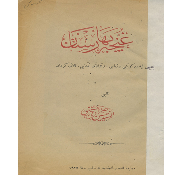 وێنەی :(1بەرگی کتێبی (غنچە بهارستان)ی حسێن حوزنی موکریانی)